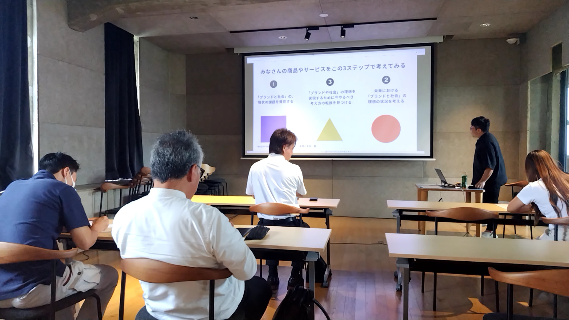 第1回目の今回は、講師自身の事例も交えながらブランドをつくる際の発想方法について学んだほか、参加者自身が自社製品についてブランドコンセプトを考え、互いにフィードバックし合うなどブランディングについて理解を深めました。