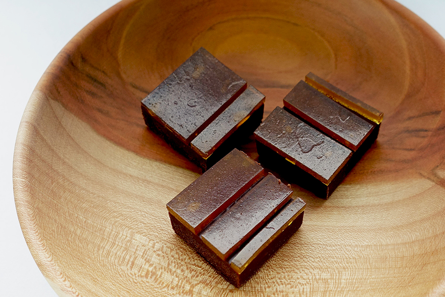 寒天の透明度を高める糖度、煮詰める温度、層の厚み。試行錯誤を重ねながら、軽やかな口どけと深い奥行きを両立させた、あたらしい和菓子が誕生した。